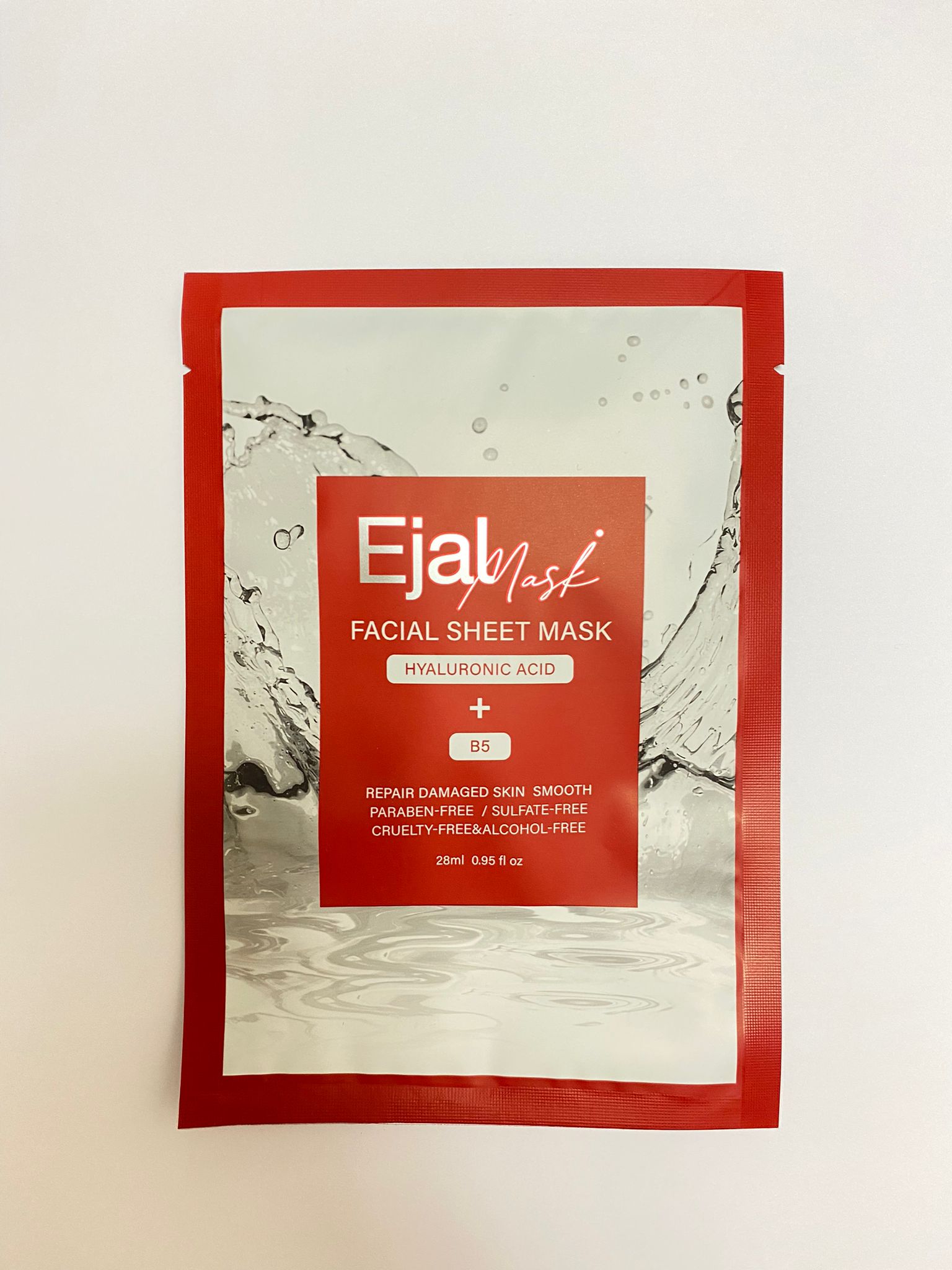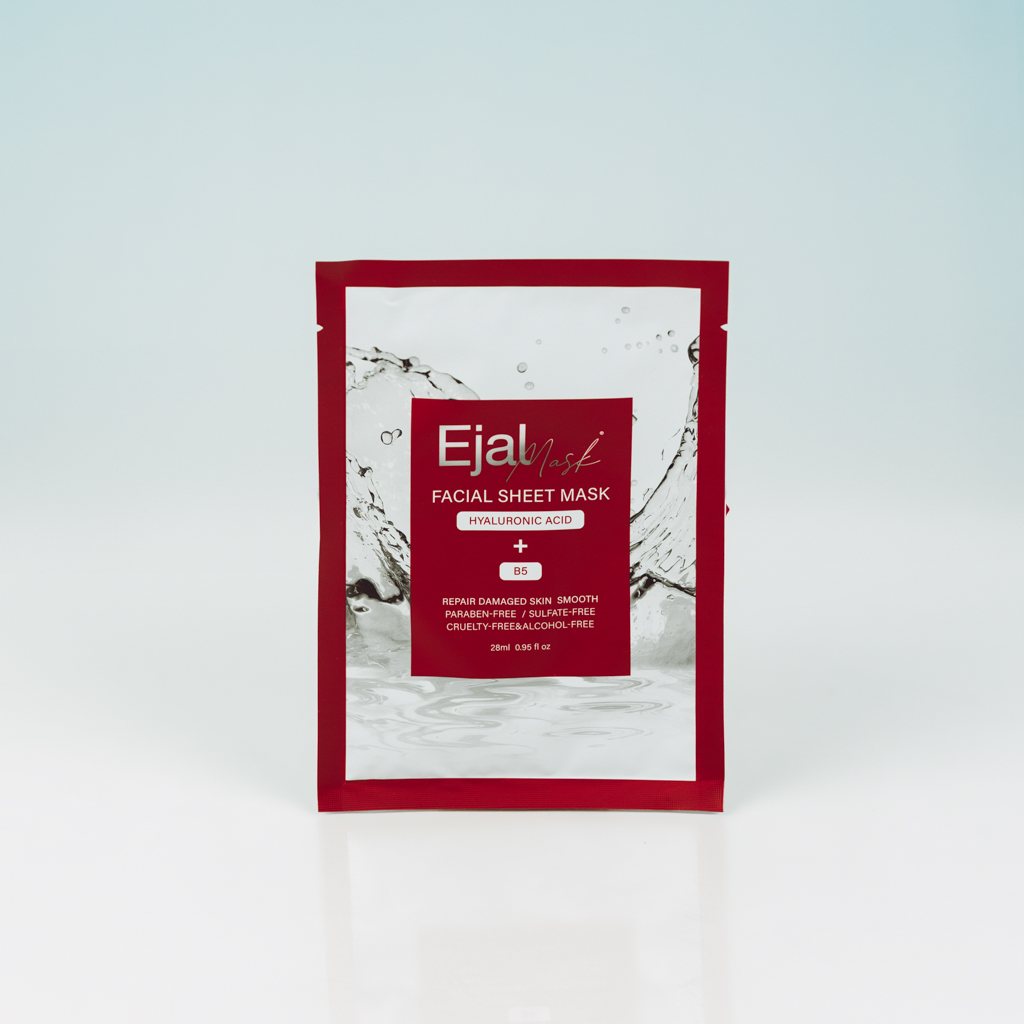 Ejal mascarilla facial – con ácido hialurónico y vitamina B5. El efecto sinérgico del ácido hialurónico y la vitamina B5 puede hidratar la piel seca. Nutre profundamente la piel. Repara la piel sensible o con el estrato córneo dañado. Deja la piel hidratada y suave.