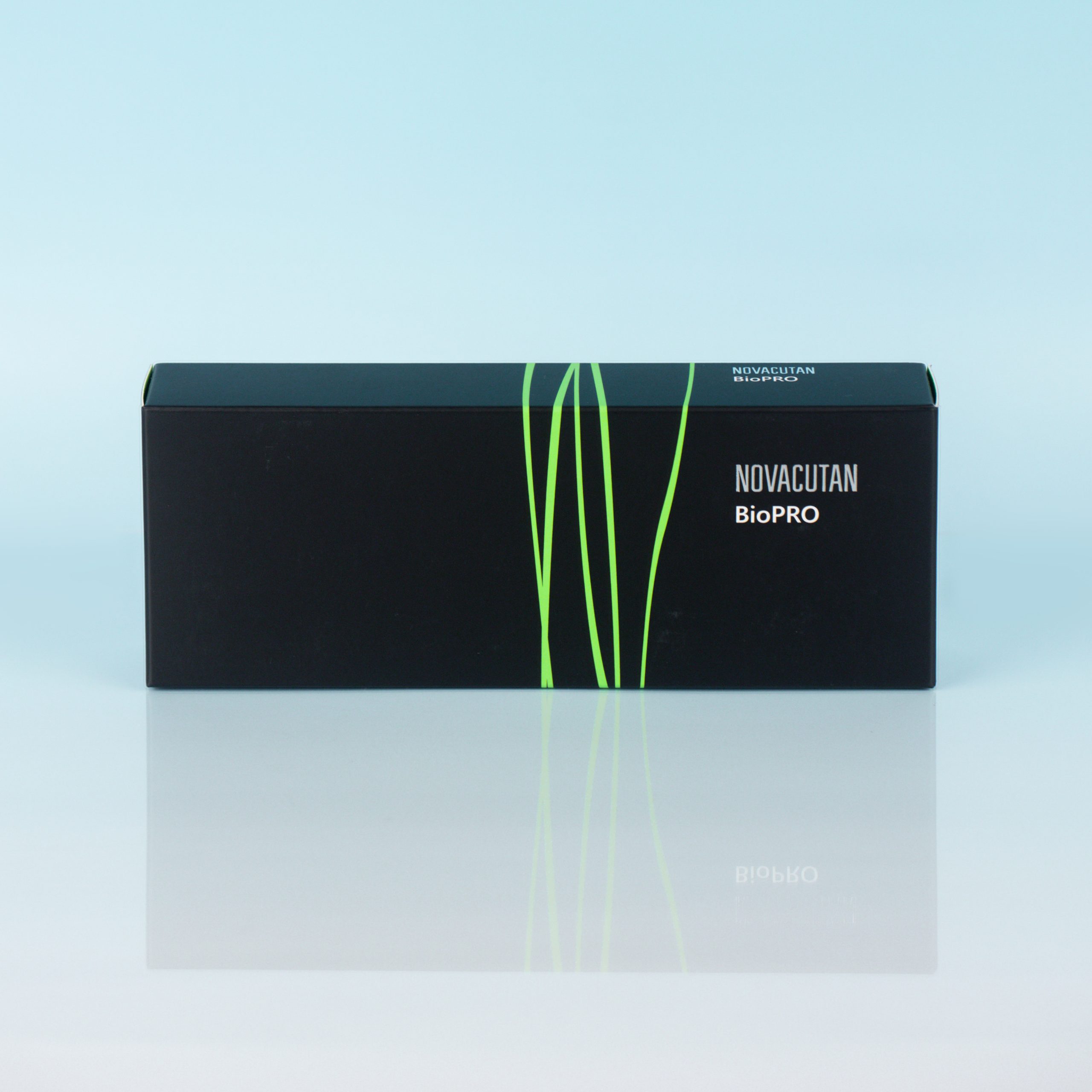 Novacutan BioPRO es una preparación inyectable de terapia antiedad de acción focal, creada mediante un proceso multifásico de reticulación de ácido hialurónico. Gracias a la tecnología aplicada 3 Design Visual System, Novacutan BioPRO posee un marcado efecto dermogeroprotector y estabilizador de la hidratación, que asegura la activación de procesos antiinflamatorios a nivel celular. Su acción a largo plazo contra los cambios relacionados con la edad se debe a un mecanismo de acción de tres etapas: extracelular, intracelular y subcelular.r.