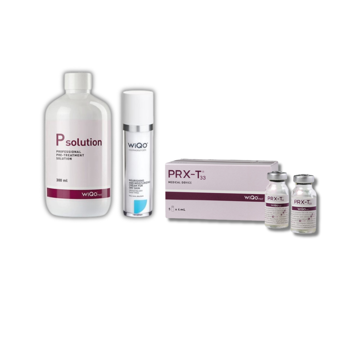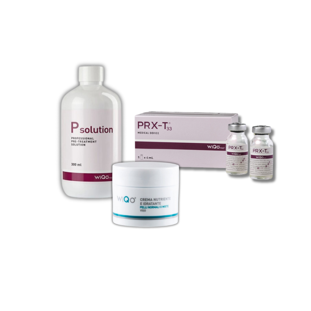 - Kit #3: PRX-T33 (5 x 4 ml) + PRX P-Solution (300 ml) + crema WiQo Pelli Secche (50 ml)